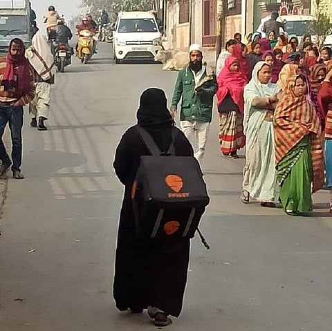 उत्तर प्रदेश। देश में इंटरनेट और सोशल मीडिया पर Swiggy का बैग लिए नकाब पहने हुई महिला की तस्वीर जमकर वायरल हुई। बड़ी-बड़ी हस्तियों ने महिला के काम को जमकर सराहा है। व्हाट्सएप ग्रुपों और Facebook के पेजों पर भी महिला की तस्वीर और उसके काम की जमकर तारीफ हो रही। सोशल मीडिया पर वायरल इस तस्वीर को लेकर द मूकनायक की टीम ने पूरा लखनऊ छान मारा। यह तस्वीर डालीगंज क्षेत्र में नदवा कालेज को जाने वाली ढलान पर एक शख्स द्वारा खींचकर डाली गई थी। पूरे दिन की मेहनत के बाद द मूकनायक की टीम ने पैदल चलकर सामान की डिलीवरी करने वाली इस महिला का साक्षात्कार किया।