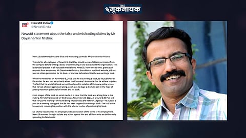 "सोशल मीडिया पर किताब की तस्वीरों से यह स्पष्ट है कि इस किताब को बनने में काफी समय लगा था। मिश्र ने बुधवार, 22 नवंबर, 2023 को दोपहर लगभग 2.30 बजे इस्तीफा दे दिया, और उसी शाम - जब वे नेटवर्क18 समूह में कार्यरत थे - उन्होंने एक्स पर एक पोस्ट डाला, जिससे प्रतीत होता है कि उन्हें एक किताब लिखने के लिए निशाना बनाया गया था। सच तो यह है कि वह केवल अपनी पुस्तक को प्रचारित करने के गुप्त उद्देश्य से अपने पद का दुरुपयोग कर रहे थे। मिश्र ने अपने नियोक्ता को बदनाम किया है और अपने रोजगार की शर्तों का उल्लंघन किया है। News18 उनके और उन सभी लोगों के खिलाफ कोई भी कार्रवाई करने का अधिकार सुरक्षित रखता है जो जानबूझकर उनका झूठ फैला रहे हैं", न्यूज़18 ने अपने एक्स हैंडल से ट्वीट किया।