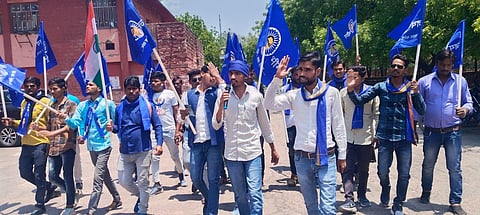 जयपुर। जंतर-मंतर पर प्रदर्शन कर रहीं रेसलर बेटियों को न्याय दिलाने, सेंट्रल विस्टा का नाम बाबा साहब भीम राव आंबेडकर के नाम पर रखने व अनुसूचित जाति, अनुसूचित जनजातियों के साथ अल्पसंख्यक और अन्य बहुजन जातियों पर हो रहे उत्पीड़न के विरोध में आजाद समाज पार्टी (कांशीराम) ने गत शुक्रवार को सड़कों पर उतकर कर प्रदर्शन किया। प्रदेश के जिला मुख्यालयों पर प्रदर्शन के बाद राष्ट्रपति के नाम जिला कलक्टरों को ज्ञापन सौंपे गए।